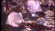 A Guatemalan Indian butchers meat in an outdoor market in a village that was destroyed after the 1976 earthquake. An Guatemalana Woman walks up a hill over the rubble of the houses that were destroyed during the earthquake and another woman watches over her children.