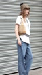 LONDON, ENGLAND - SEPTEMBER 20: (SLOW-MO) A guest wearing black and tan stripped hat, tan Gucci shoulder bag, white shirt and jeans outside Yuhan Wang during London Fashion Week on September 20, 2025 in London, England. (Footage by Hanna Lassen/Getty Images)