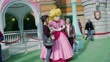 LOS ANGELES, CALIFORNIA - JANUARY 12: (AUDIO OMITTED) Guests take pictures with Princess Peach during techincal rehearsals at Super Nintendo World on January 12, 2023 in Los Angeles, California. (Footage by Los Angeles Times via Getty Images)
