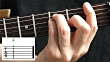 A of the most important major chords performed on an electric guitar with tablature notion on screen.