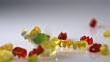 Gummy Bears drop on a white surface in slow motion. - 4K stock video
