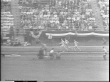 Gunder Hagg of Sweden world's greatest distance runner ends American tour in triumph and says farewell / Gunder Hagg takes the lead from Hulse and Gil Dodds in third place on track.