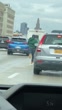 Guy runs down the Brooklyn-Queens Expressway in Timberland boots and a green Yankees hoodie in New York city traffic, filmed from inside a car. (Footage by Collab via Getty Images UGC)