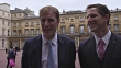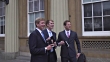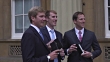 Gvs and interview with Olympic Rowers George Nash, Matthew Langridge and Constantine Louloudis on receiving their MBEs at Buckingham Palace.