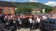GVs from Ballymurphy, Northern Ireland, where a husband and wife who died on the same day 45 years apart have been buried together, after the widow passed away as his remains lay in a morgue following exhumation. Joseph Murphy, who was shot dead in the Northern Ireland Troubles in the early 1970s, was exhumed last year by order of a coroner investigating the disputed circumstances of the killing. His widow Mary, 83, died on Monday after a battle with cancer as her husband's remains continued to lie in a Belfast morgue. It was the same date Mr Murphy died in 1971. (Footage by PA Media via Getty Images)