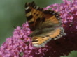 GVs of a Small Tortoiseshell butterfly on a butterfly bush flower; 1981 - stock video