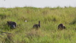 Hadada Ibises preening in green grass in savannah at midday - 4K stock video