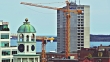 Halifax's Old Town Clock on Citadel Hill with a busy construction site in the background.