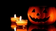 Halloween pumpkin scary face with candle on black background, Panning dolly shot Full HD footage.
