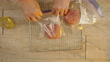 Hamburger patty preparation. Closing zip-top bag containing patties and cooking oil. Ready to be refrigerated and then cooked sous-vide.