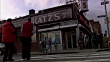 HAND HELD OF KATZ'S BUILDING FROM ACROSS STREET. SEE MAN IN RED VEST STANDING ON CROSSWALK TALKING TO PERSON OFF FRAME. SEE "KATZS" SIGN AND BANNERS. SEE MAILBOX AND PEDESTRIANS WALKING ALONG SIDEWALK. COULD BE DELI OR RESTAURANT IN LOWER EAST SIDE.<P><A - HD stock video