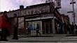 HAND HELD OF KATZ'S BUILDING FROM ACROSS STREET. SEE MAN IN RED VEST STANDING ON CROSSWALK TALKING TO PERSON OFF FRAME. SEE "KATZS" SIGN AND BANNERS. SEE MAILBOX AND PEDESTRIANS WALKING ALONG SIDEWALK. COULD BE DELI OR RESTAURANT IN LOWER EAST SIDE.<P><A href="HTTPS://WWW.SONYPICTURESSTOCKFOOTAGE.COM/FOOTAGE?KID=4322">FOR DAY-NIGHT MATCHING SHOTS, CLICK HERE.</A><P>