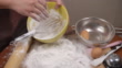 Slow motion: mix it up flour and eggs Into the cup