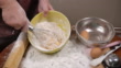 Slow motion: mix it up flour and eggs Into the cup