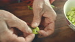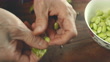 Hand peeling raw soybeans - 4K stock video