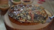 Hand serving a slice of spinach hot quiche. This video is about 4K25p
