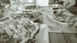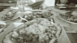 Black & White, Happy couple eating lunch in Thai restaurant, Dinner. Thai food,diet, dieting. close-up. Opening the aperture, dolly shot. Retro style, 4K Resolution.