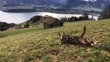 Adorable Bull Terrier humorously crawls on his belly