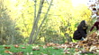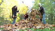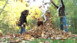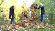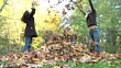 SLO MO, WS, PAN, Happy family with two children (10-11) throwing Autumn leaves in park - HD stock video