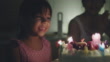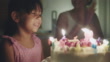 A Smiling Happily Mixed Race Girl Celebrating Her Birthday at Home While Family Members are Singing a Birthday Song. A Strawberry Cake is On a Table
