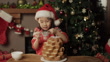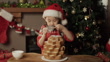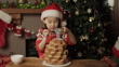 Happy young girl was decorating pandoro Christmas tree cake - 4K stock video