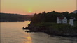 LOW AERIAL, Harbor and lighthouse at sunset, Camden, Maine, USA - HD stock video