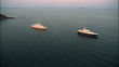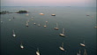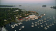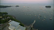 AERIAL, Harbor and town at sunset, Camden, Maine, USA - HD stock video