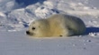 Harp Seal, Saddleback Seal (Pagophilus groenlandicus), Phoca groenlandica, seal pup on pack ice, Magdalen Islands, Gulf of St. Lawrence, Quebec, Canada, North America