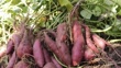 Harvest fresh sweet potatoes purple close-up in the garden in autumn - HD stock video