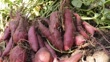 Harvest fresh sweet potatoes purple close-up in the garden in autumn selective focus