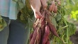 Harvest fresh sweet potatoes purple close-up in the garden in autumn - HD stock video