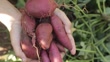 Harvest fresh sweet potatoes purple close-up in the garden in autumn - HD stock video