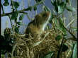 Harvest mouse sits atop nest, sniffs air then washes, Devon (Core Number: NBSL605N)