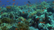 Hawksbill turtle (Eretmochelys imbricata) eats coral from reef as fish swim around, Red Sea. (FKIB734R - Clip taken from series rushes - 22289)