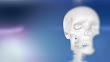 HD1080p: Stylized frame animation of a human skull indicating a headache with a red spot flashing as a pain and a green spot as healing. The skull entering the frame on the left and leaving the frame on the right.