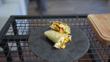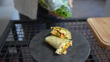Healthy Colorful Tortilla Wrap Served Neatly On Black Plate With Rocket Leaves - 4K stock video