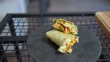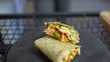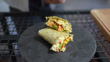 Healthy Colorful Tortilla Wrap Served Neatly On Black Plate With Rocket Leaves