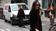 PARIS, FRANCE - SEPTEMBER 29: (SLOW-MO) Heart Evangelista wears brown sunglasses, gold earrings, a gold bag, a purple suede long dress, black platform heels and a long velvet coat outside Akris show during Womenswear Spring/Summer 2025 as part of Paris Fashion Week on September 29, 2024 in Paris, France. (Footage by Valentina Frugiuele/Getty Images,)