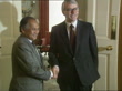 Conservative party: Heath/Thatcher feud; Westminster CMS Sir Geoffrey Howe MP (Former Deputy PM) intvwd SOF - Victory has got to be found on the policies of John MajorDowning ST No 10 CMS PM John Major MP and Indonesian Minister of State for Research and Technology Prof Dr Bucharuddin Jusef Habibie into room PAN L-R and pose for photocallEXTWestminster CMS John Carlisle MP (Con:Luton N) intvwd SOF- His place is now on the opposition benchesINTUSA ChicagoHilton HotelMS SIDE Former PM Margaret Thatcher MP along onto stage PAN R-L and shakes with two menTGV Audience applauding some standingLMS Thatcher at podiumEXTENGLAND LondonWestminster CMS Graham Riddick MP (Con:Colne Valley) intvwd SOF - She's got to remember her responsibilities to the partyMS SIDE Cranley Onslow MP (Con:Woking) along PAN R-LCMS Cranley Onslow MP (Con:Woking) intvwd SOF - Family tiffs are embarrasingINT2 SHOTCMS Gerald Kaufman MP (Shadow Foreign sec) intvwd SOF- 2 Ex-PMs going at each other like characters in a Punch and Judy showQueen Anne's Gate InvernessMS Lib Dem Leader Paddy Ashdown MP into pkf and sits PAN L-R joined by Sir Russell Johnston MP (Lib Dem: Nairn & Lochabar)CMS Ashdown holding up policy document 'Citizens' Europe'CMS SIDE TV cameras at pkfCMS Paddy Ashdown MP (Leader,Lib Dem) pkf SOF - Come on John are you in or are you out?EXTWestminster CMS Michael Brunson i/c SOF & sign off