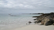 Looking out from the Island of Gunna on Midsummer's Eve, over Gunna Sound to the island of Tiree. Hebrides, Scotland, UK.