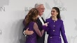 BERLIN, GERMANY - FEBRUARY 6: (L-R) Helmut Schlotterer, Emerson Tenney and Teri Hatcher attend the Marc Cain Fashion Show at Arena Berlin on February 6, 2024 in Berlin, Germany. (Footage by Christian Ender/Getty Images)