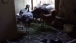 Hen and turkey eating corn seeds in the backyard. - 4K stock video