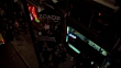 HIGH ANGLE DOWN OF NIGHTCLUB ENTRANCE, SIGN OVER ENTRANCE READS ROADS. ZOOMS IN, THEN POV MOVES DOWN TO ENTRANCE, THEN ZOOMS IN AGAIN. STREET SIGN READS JACK KEROUAC. CROWD OF PEOPLE AT ENTRANCE. - HD stock video