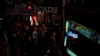 HIGH ANGLE DOWN OF NIGHTCLUB ENTRANCE, SIGN OVER ENTRANCE READS ROADS. ZOOMS IN, THEN POV MOVES DOWN TO ENTRANCE, THEN ZOOMS IN AGAIN. STREET SIGN READS JACK KEROUAC. CROWD OF PEOPLE AT ENTRANCE.