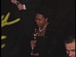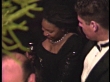 1998 ACADEMY AWARDS PARTY: Whoopi Goldberg poses for paparazzi with her Oscar on the red carpet and is escorted up staircase.