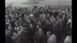 TX 2.11.1959 *** B/W SEQ ***High angle view empty motorwayTracking shot as along M1 motorwayCrowds looking down from bridge as cars along on motorwayCrowds gathered for official opening of new motorwayErnest Marples (Transport Minister 1956-1964) speech SOT