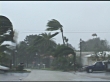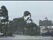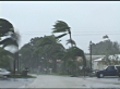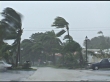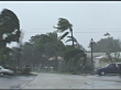 High winds blow palm trees on a flooded suburban street during Hurricane Frances in Juno Beach, Florida.