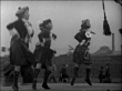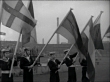 Highland Games open in Edinburgh; SCOTLAND: Edinburgh: Murrayfield: EXT / RAINPeople walking through empty stands in stadium PAN / Flagbearers / Shots of officials arriving onto pitch wearing raincoats / Lord Provost making speech (not heard) / Girl with flowers / Spectators in stands / Woman presented with flowers / Highland dancing on stage / Male competitors warming up / High jump competition / Diane Leather wins Ladies' half mile race / Scottish hammer throw / Two men wrestling / TX 19.8.56 / 7.30pm