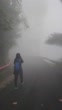 Taiping, Perak, Malaysia - A women hiking Maxwell hill or locally known as Larut Hill alone with fog around