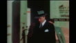 Home Movie WS of Edgar Bergen leaving a studio in Hollywood 1940s. A portly man follows with a suitcase.